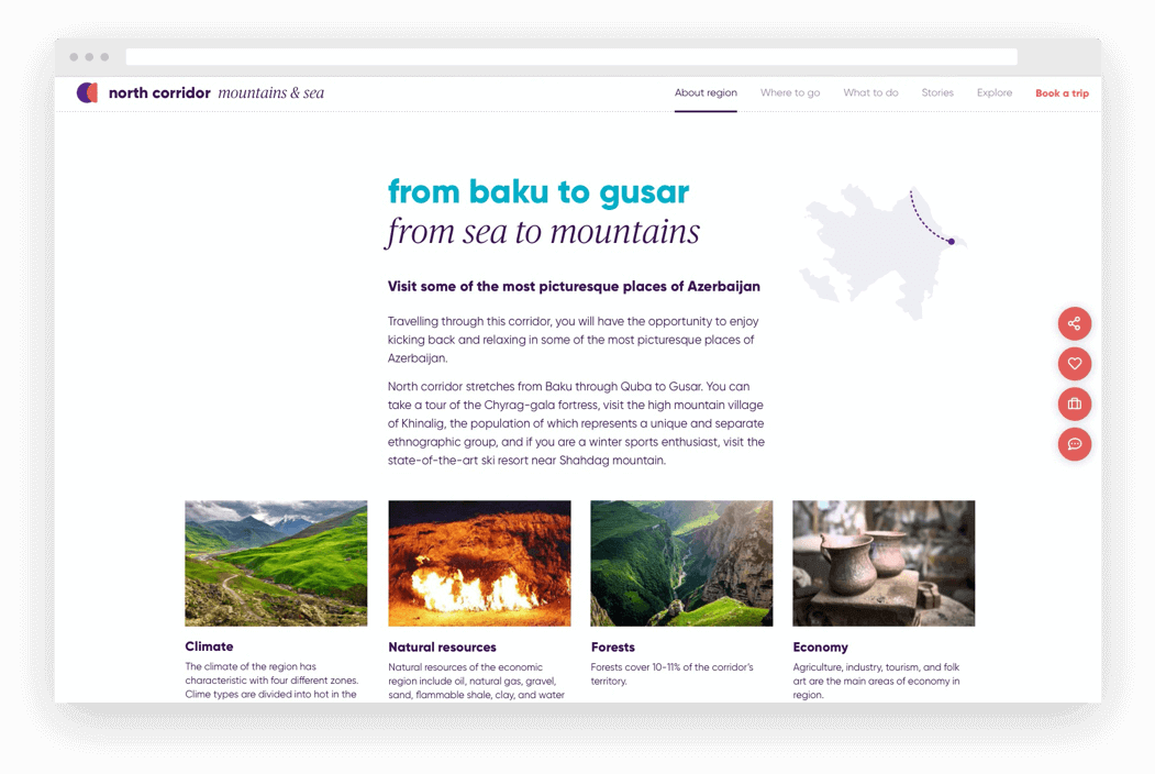 With clearly defined guidelines, designing a compelling user experience was not a big deal anymore. One month later, Creatim handed the client the final mockups and instructions for the developers. Six months later, the new azerbaijan.travel website welcomed its first visitors.