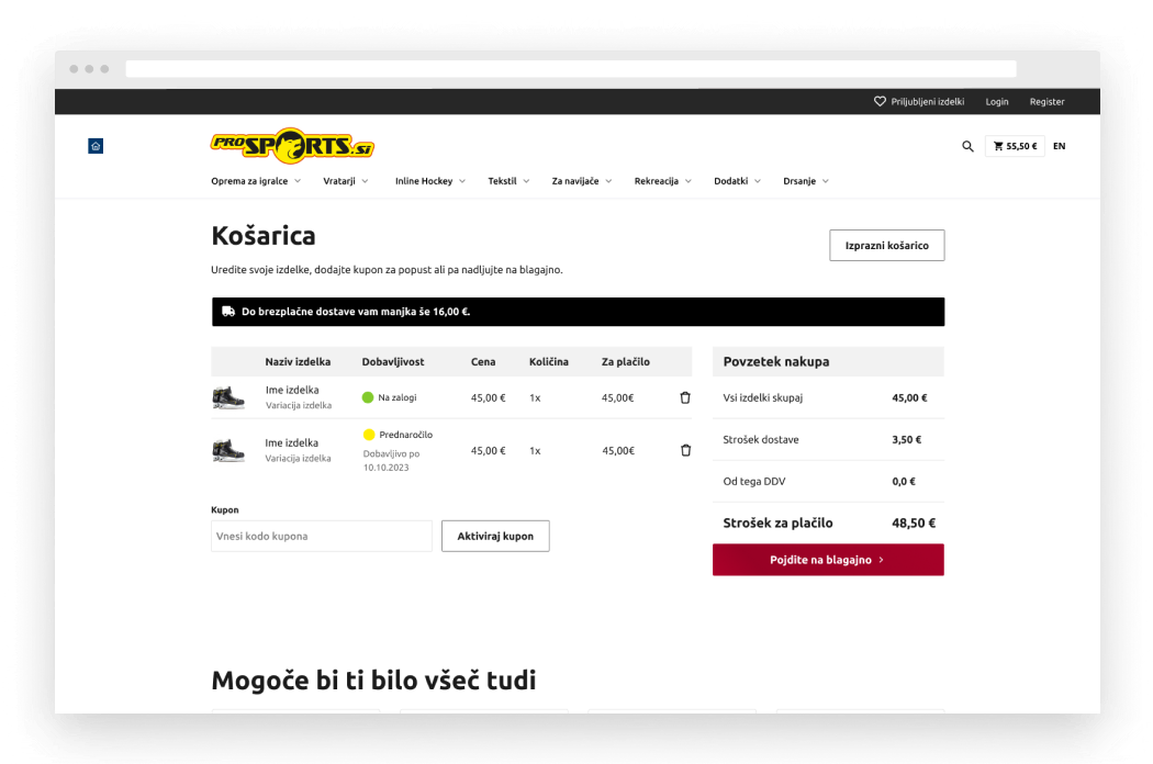 - V Sloveniji spletna trgovina omogoča osebni prevzem v poslovalnicah, ki delujejo v okviru Prosportsa.